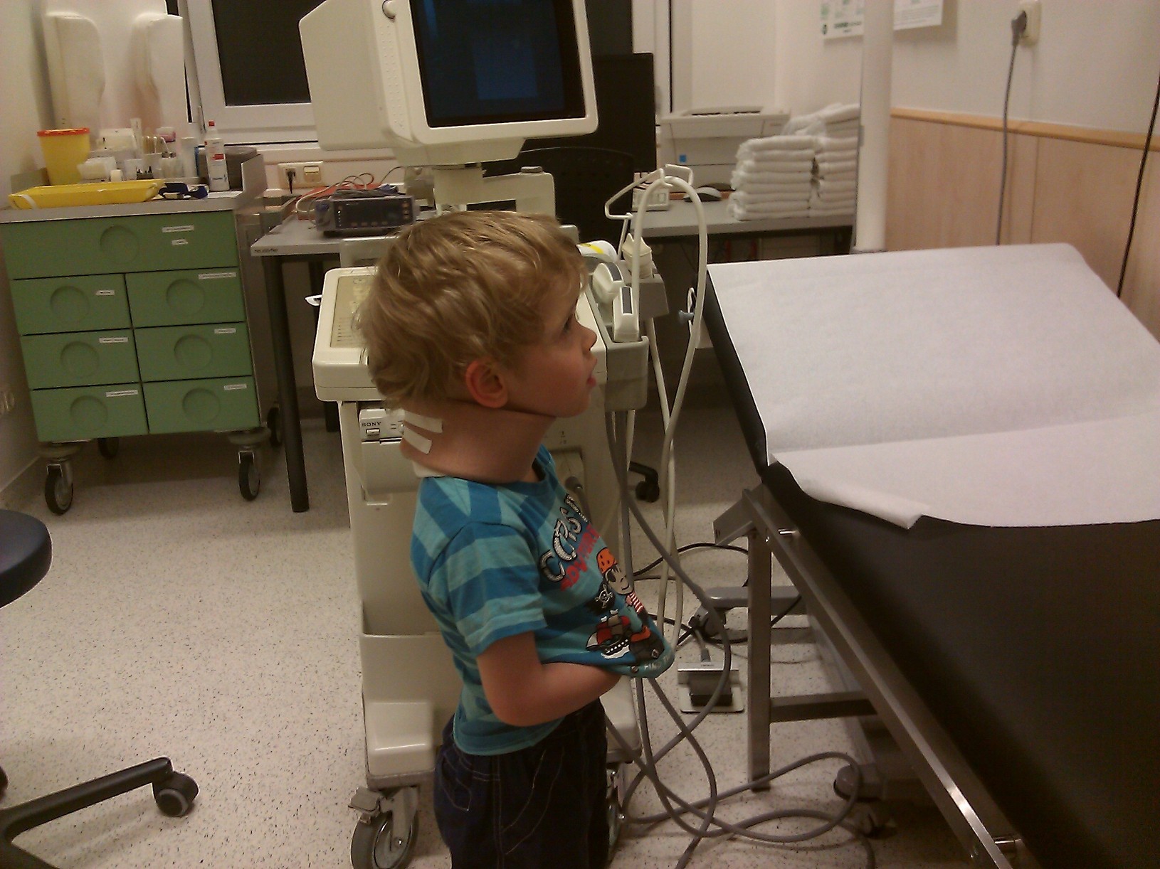 …er hat einen Halsschlauch bekommen damit er wärme am Hals hat und etwas Schmerzsaft. Das macht man bei den Kids so damit sie den Hals schnell wieder bewegen. Nochmal Glück im Unglück gehabt. Pierre fand es im Dritten Ordnen toll und auch das Bilder von seinem Hals gemacht wurden. Ingo und ich hätten uns das gerne alles erspart 🙁