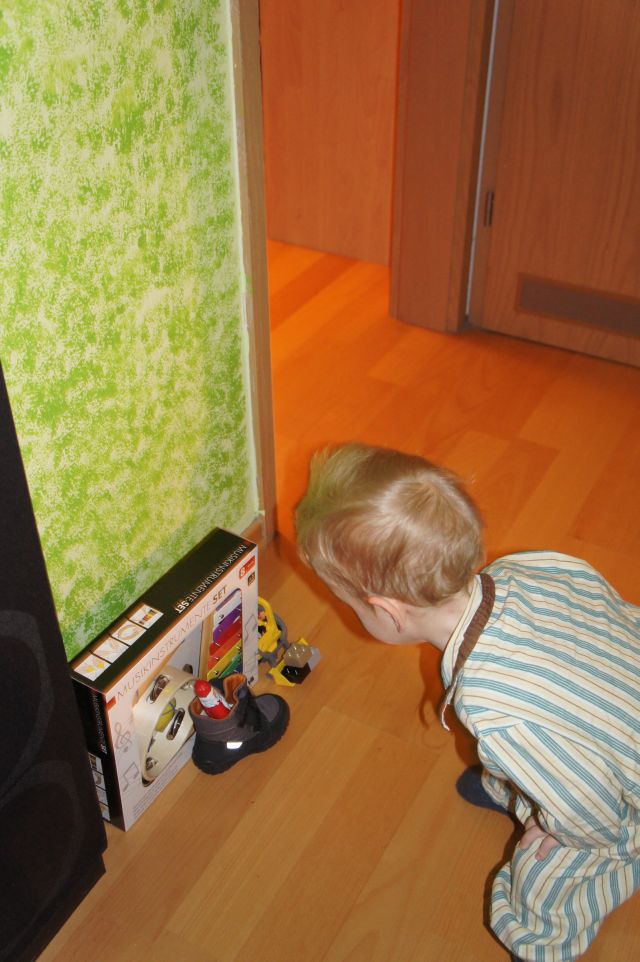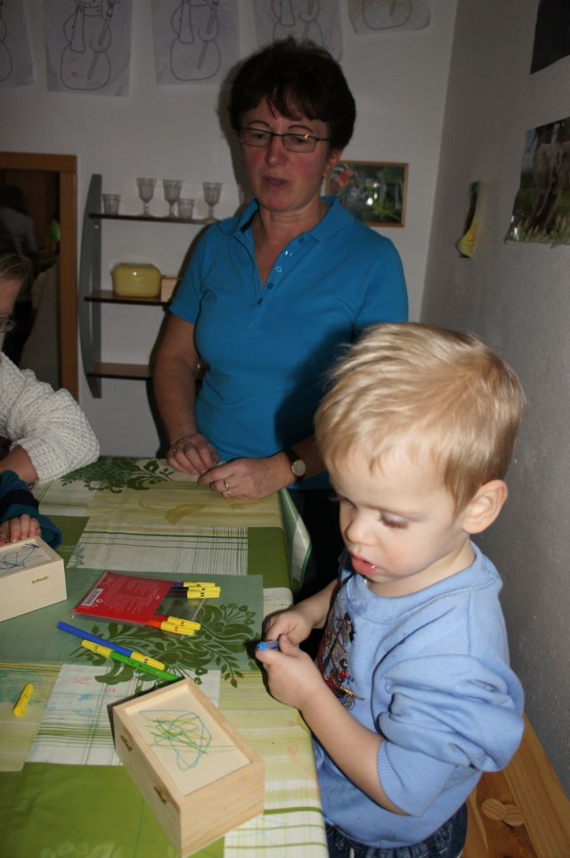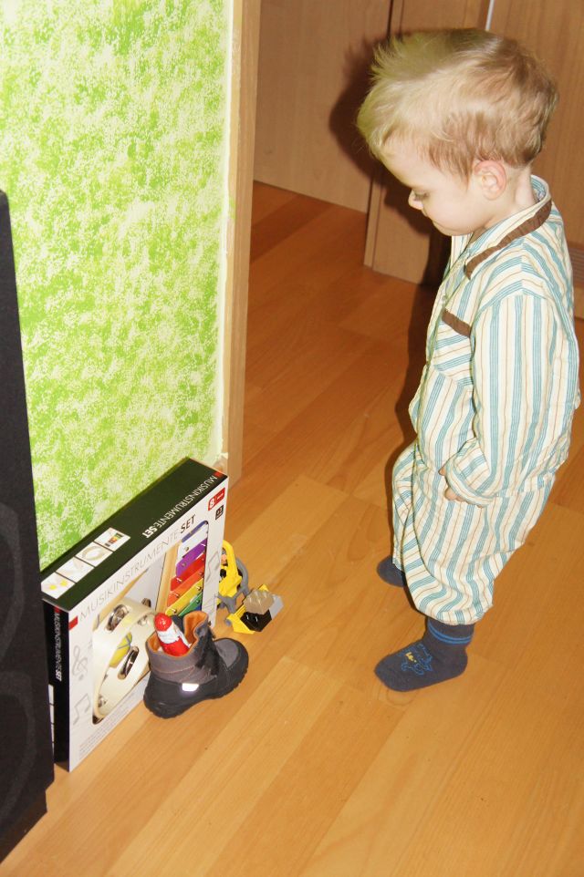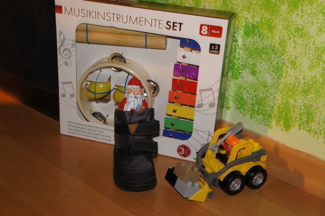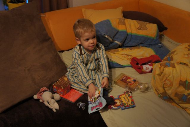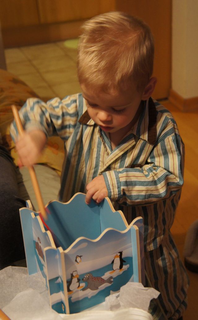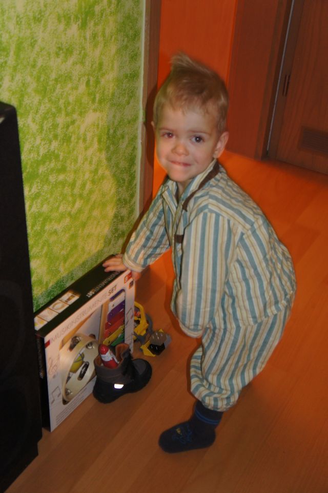 Pierre war total begeister von seinen kleinen Geschenken und wollte gar nicht  aufhören zu spielen, ABER er mußte ja dringend los in die Kindergrippe denn da fand dann am Nachmittag  die Adventsfeier statt.