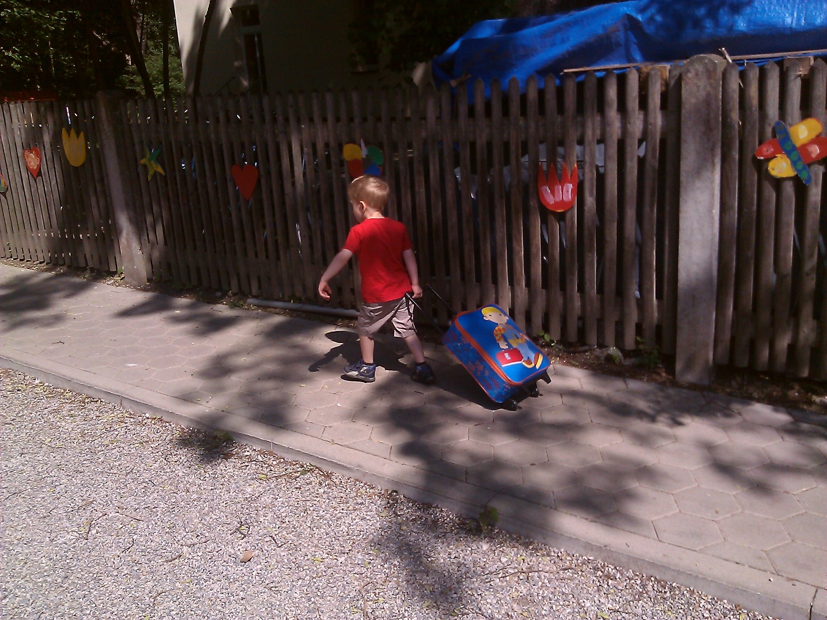 Freitag früh haben wir Pierre seinen Koffer gepackt und um 11 Uhr in den Kindergarten gebracht. Stolz wie Egon zog er seinen Koffer.