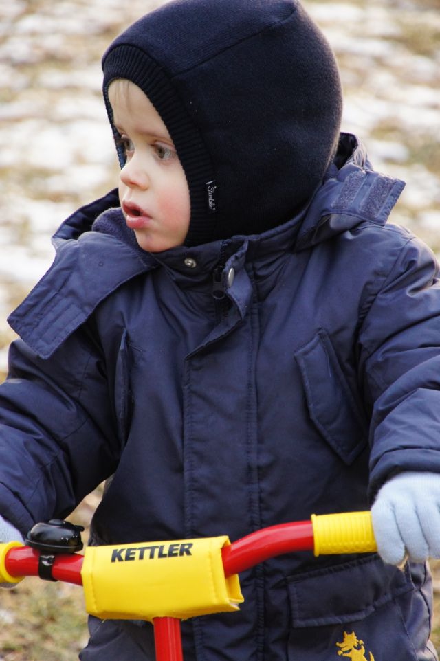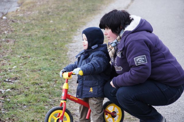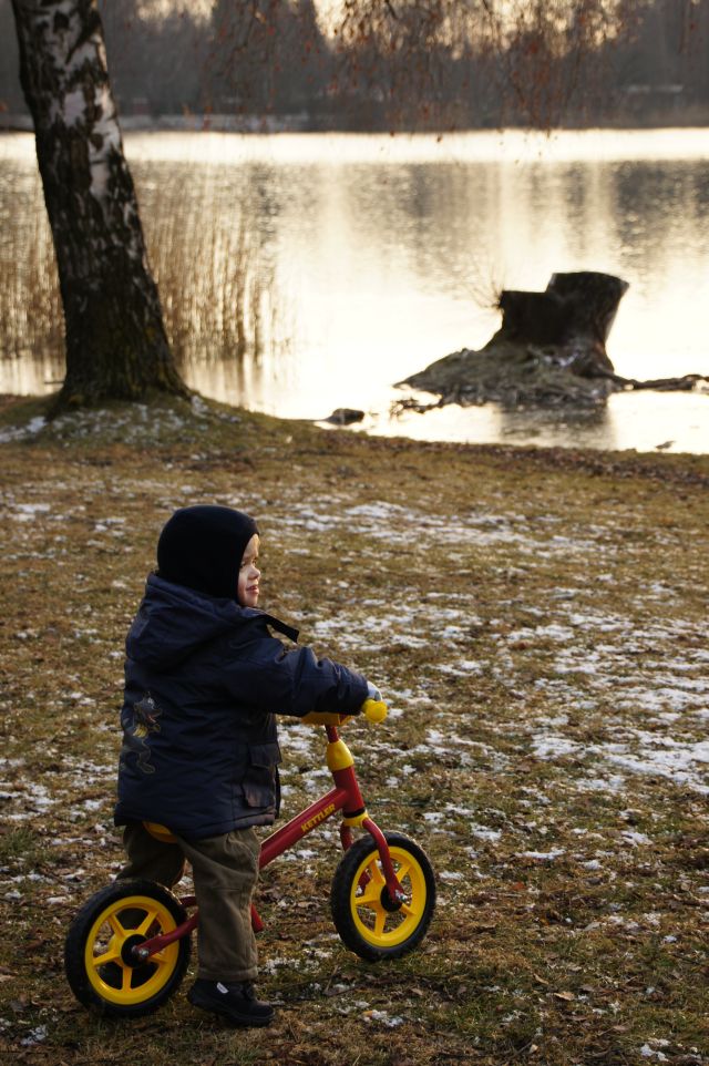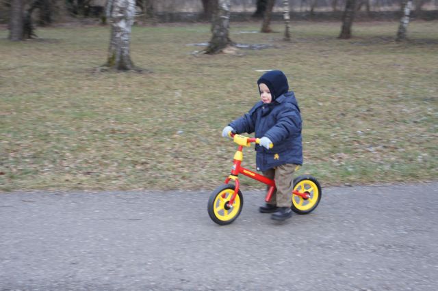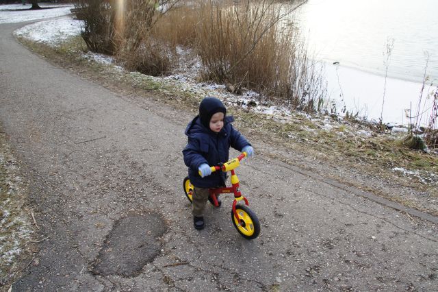 Endlich traut Pierre sich auch mit seinem Laufrad zu fahren 🙂