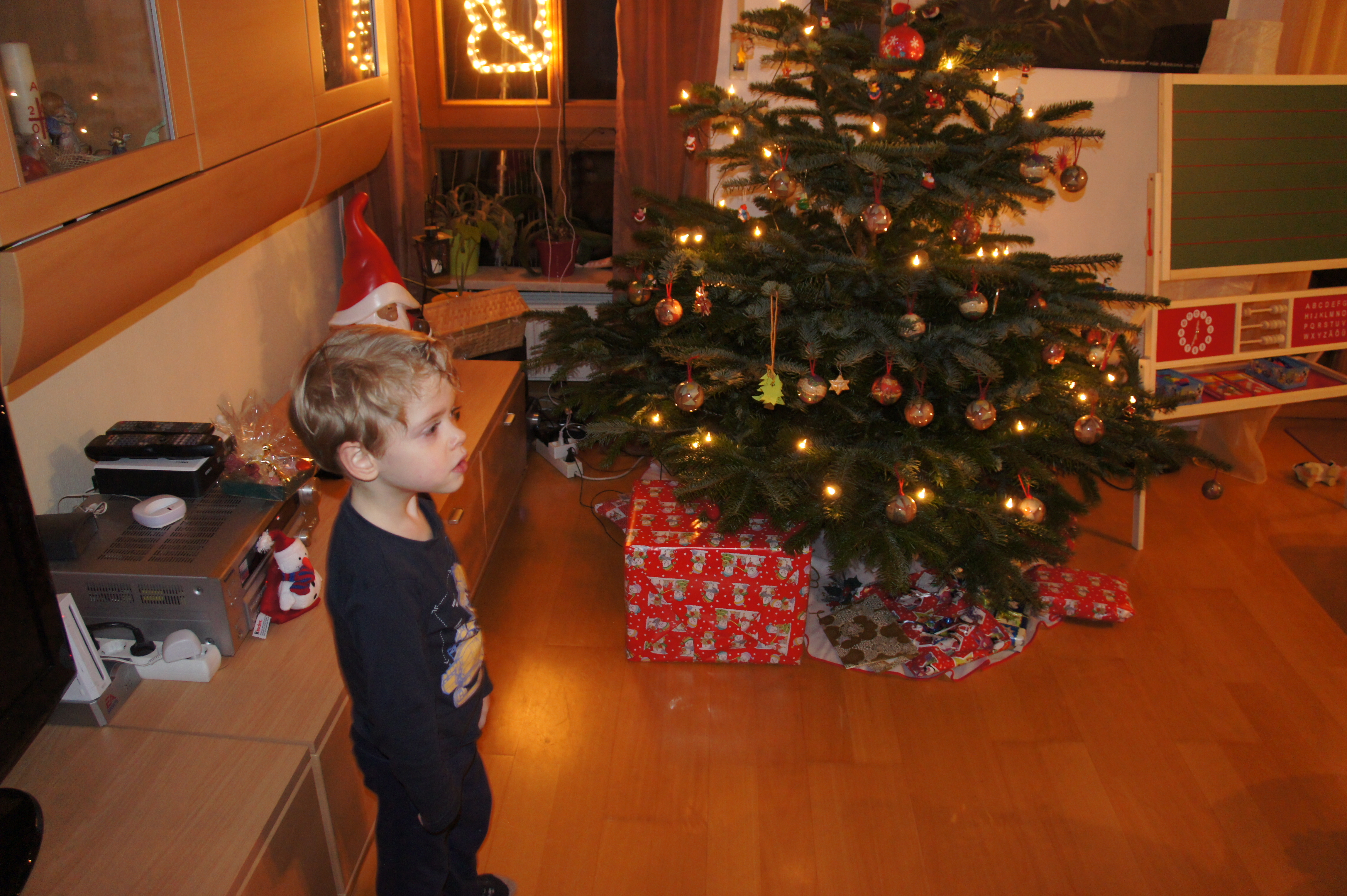 Kaum geht man mal spazieren, zack hat sich das Christkind ins Wohnzimmer geschlichen und heimlich die Geschenke unter den Baum gelegt! Zefix!